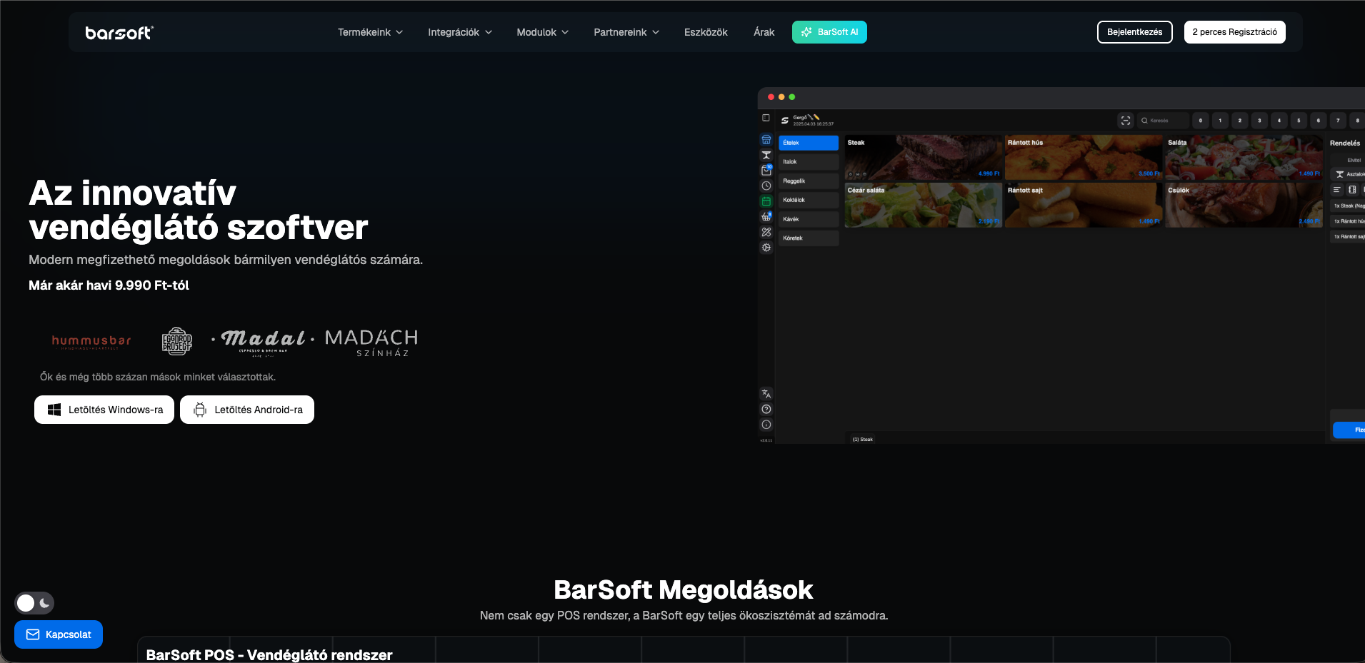 A BarSoft egy kiemelkedő magyar vendéglátói szoftver akiknek a weboldala is megköveteli a modern designet.