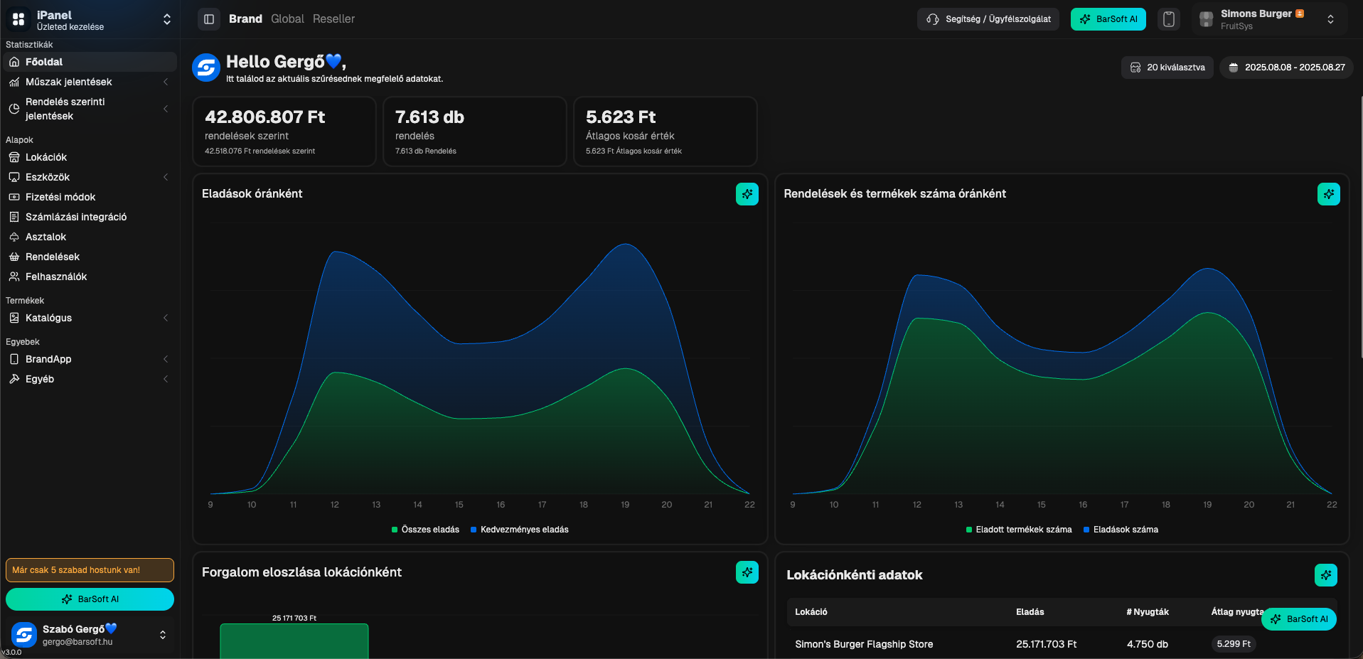 A BarSoft számára folyamatosan fejlesztem a háttér iPanel rendszerüket melynek a célja, hogy az ügyfelek folyamatosan kezelni tudják a saját üzletüket.